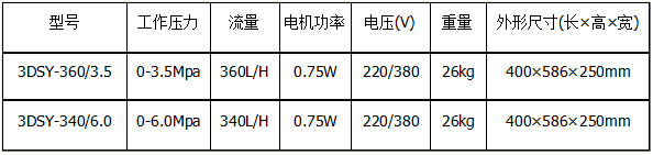 上海楷陽3DSY型電動試壓泵的性能參數如下: