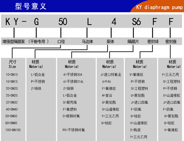 KY-40LP增強型不銹鋼氣動隔膜泵,是上海楷陽泵業不斷吸取和學習先進氣動隔膜泵的經驗研發成功的最新型國產氣動隔膜泵。本系列泵在泵體和配氣裝置都有革命性的改進,具有無死點、效率高、流量大等特點。廣泛應用于制藥、污水處理、食品、化工、汽車、涂料等行業。水泵的材質有鑄鐵、鋁合金、304不銹鋼等,隔膜片選用山道橡膠和特氟龍F46材質。