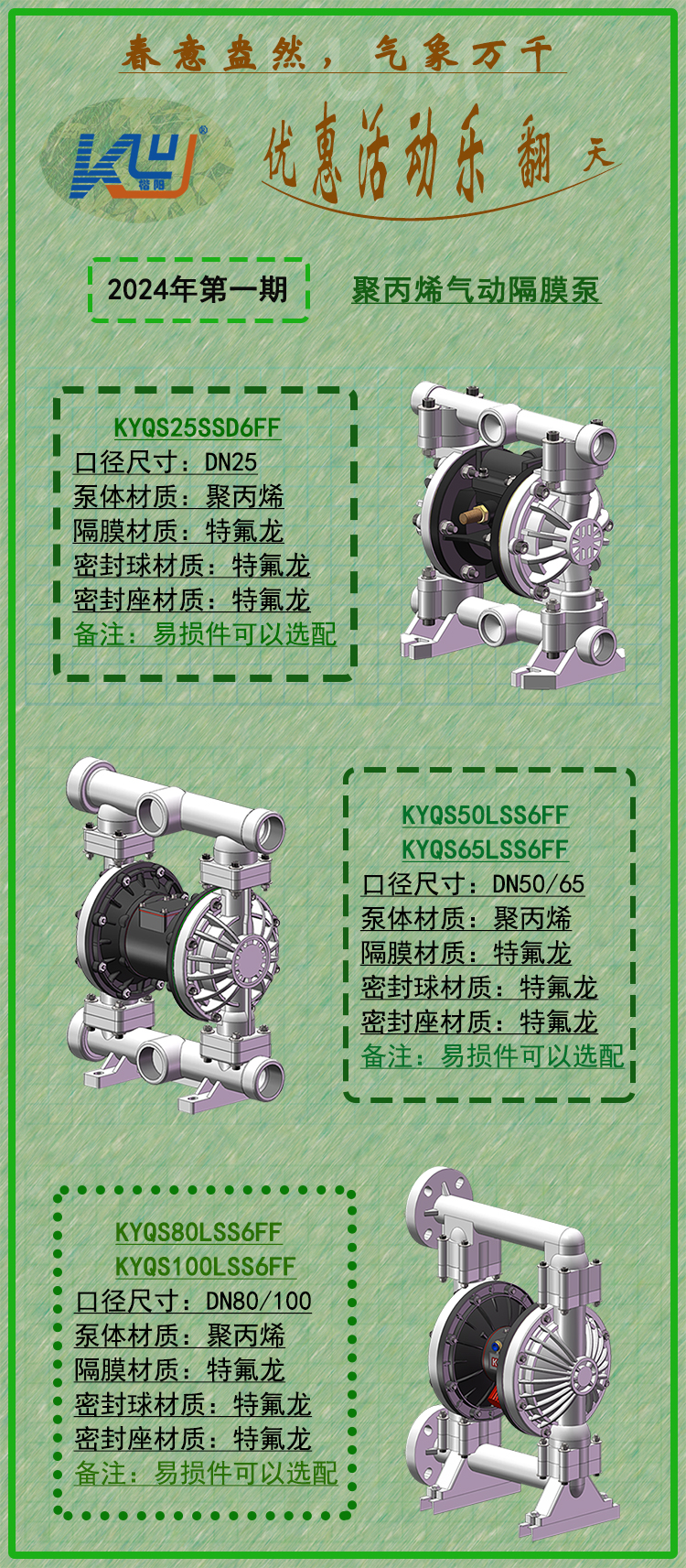 KYQ和KYQS等系列產(chǎn)品經(jīng)過了近幾年的市場(chǎng)檢驗(yàn),不僅外觀更加精致,性能更是有質(zhì)的提升。為了提高廣大新老客戶對(duì)KY新產(chǎn)品的認(rèn)識(shí)速度,楷陽泵業(yè)在2024年會(huì)分階段、分型號(hào)定期推出優(yōu)惠活動(dòng)。
