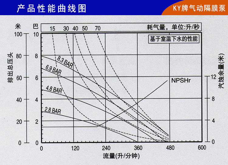 6、氣動隔膜泵不需灌引水,吸程高達(dá)7米,揚程達(dá)80米,出口壓力≧8bar