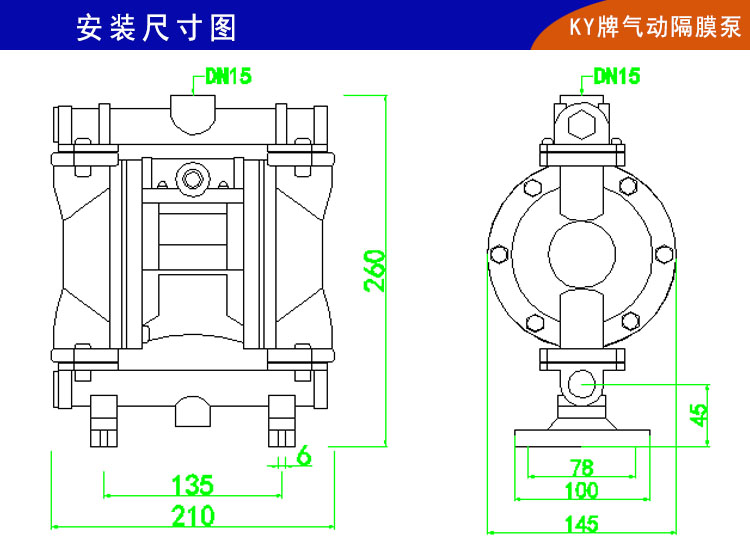9、KY牌鋁合金氣動隔膜泵整體構造上更加優(yōu)化,泵腔和主管路都有明顯加強,自吸功能和流量揚程都有很大改善。