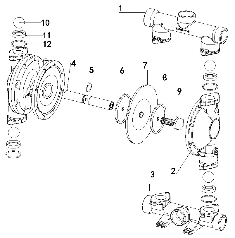 4正常弱酸弱堿常溫介質(zhì),每六個(gè)月檢查一次密封球、密封座、隔膜片,根據(jù)實(shí)際情況取決是否更換。注意:若介質(zhì)為強(qiáng)酸強(qiáng)堿或者溫度超過(guò)80度、液體含有尖銳雜質(zhì)時(shí),需每周預(yù)檢隔膜泵易損件。