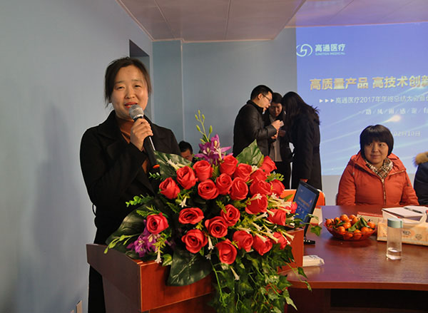 接下來上臺的是公司總經(jīng)理王明莉女士,她總結(jié)了這一年來,高通醫(yī)療的總體工作,并衷心感謝每一位高通醫(yī)療人的辛勤付出,是他們的努力贏得了公司更大的進(jìn)步。同時,也相信憑借高通醫(yī)療人的智慧與創(chuàng)造力,一定會在2018年助力公司取得更輝煌的發(fā)展,共同打造一個更強大更美好的高通醫(yī)療。