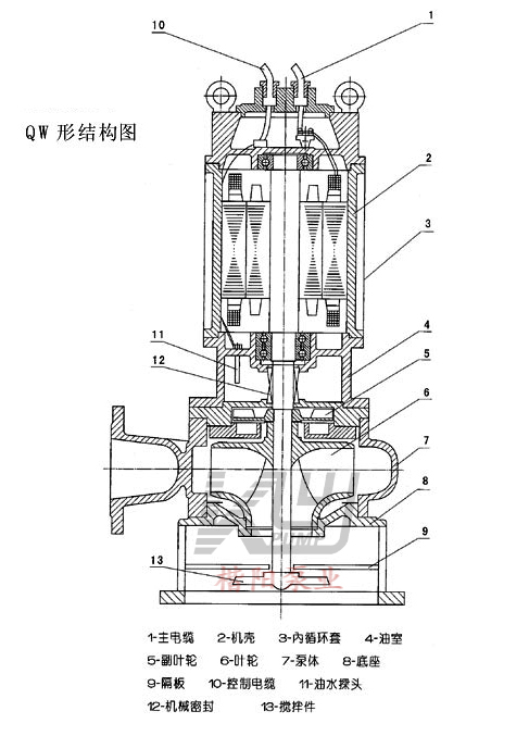 七、QW(WQ)型潛水式可移動無堵塞排污泵結(jié)構(gòu)圖: